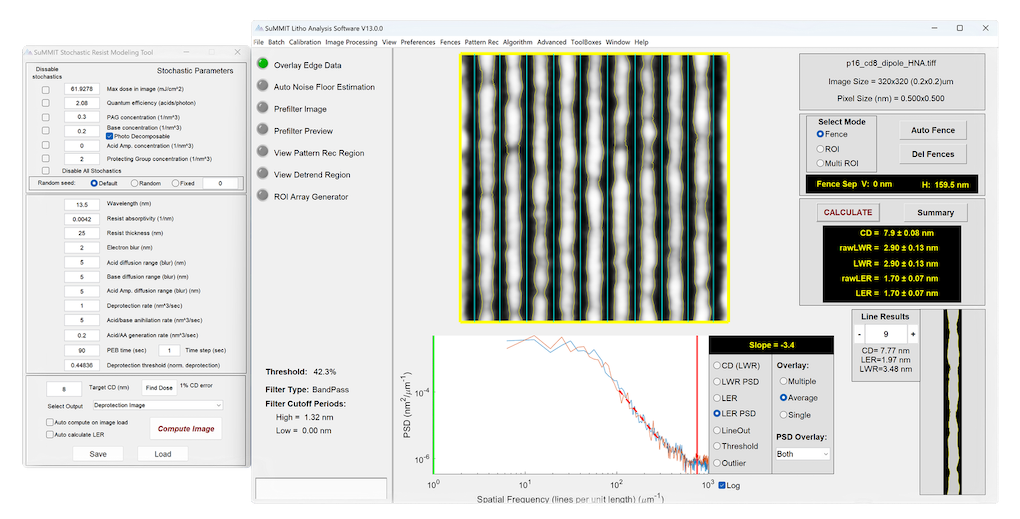SuMMIT Stochastic LER Modeling Toolbox adds LER modeling capabilities to SuMMIT. Load an aerial image into SuMMIT, define the resist parameters and SuMMIT will compute the deprotection image, including LER.